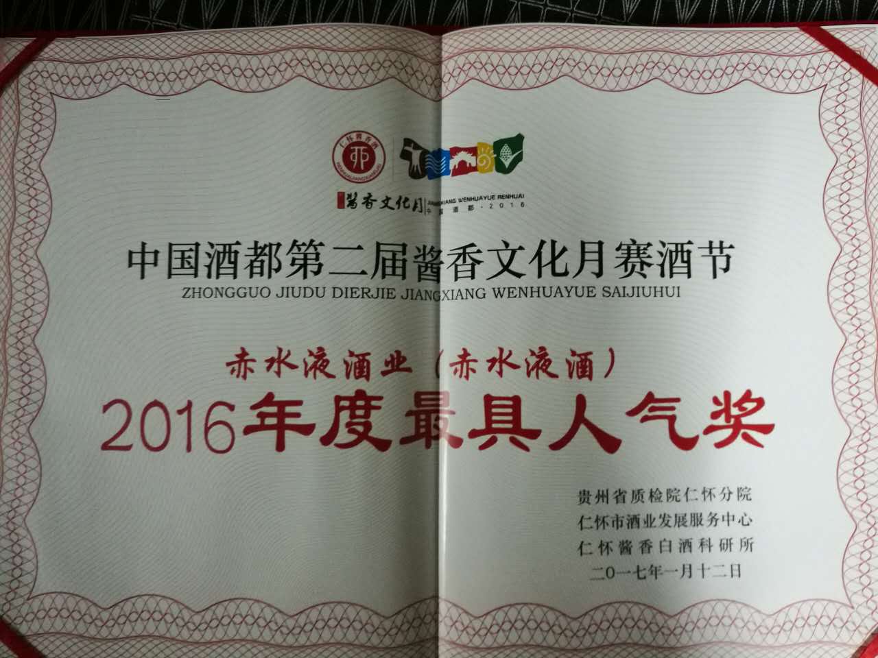 2016年——中國酒都第二屆醬香文化月賽酒節(jié) 年度最具人氣獎(jiǎng)